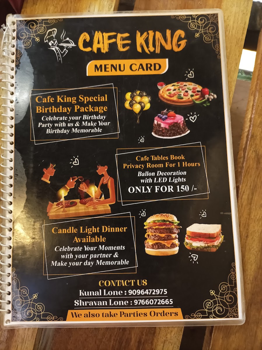 Welcome to Cafe King Titwala, a charming spot nestled in the heart of Shidivinayak Colony, where culinary delight meets a cozy atmosphere. This cafe stands out for its inviting ambiance, making it an ideal destination for family celebrations, romantic dates, or casual hangouts.